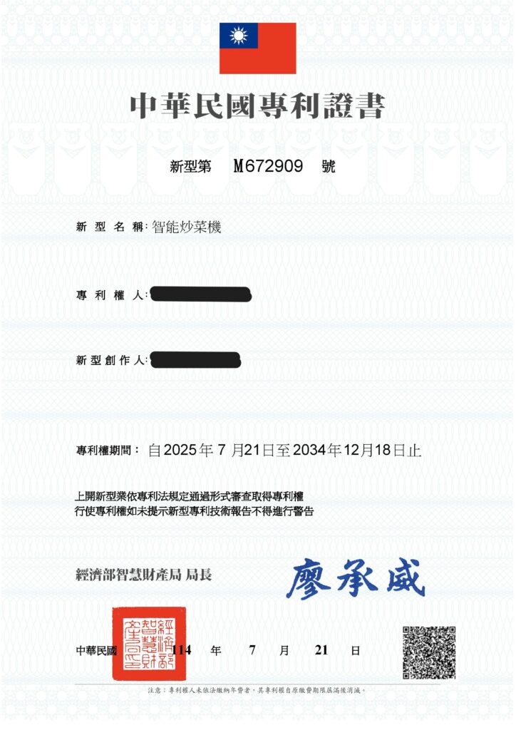 最新消息GF御廚助手專利通過 Posted on 2025 年 9 月 25 日2025 年 11 月 18 日 by 飯大廚小編 本案專利自2025年7月21順利通過 飯大廚小編 2026春節公休時間